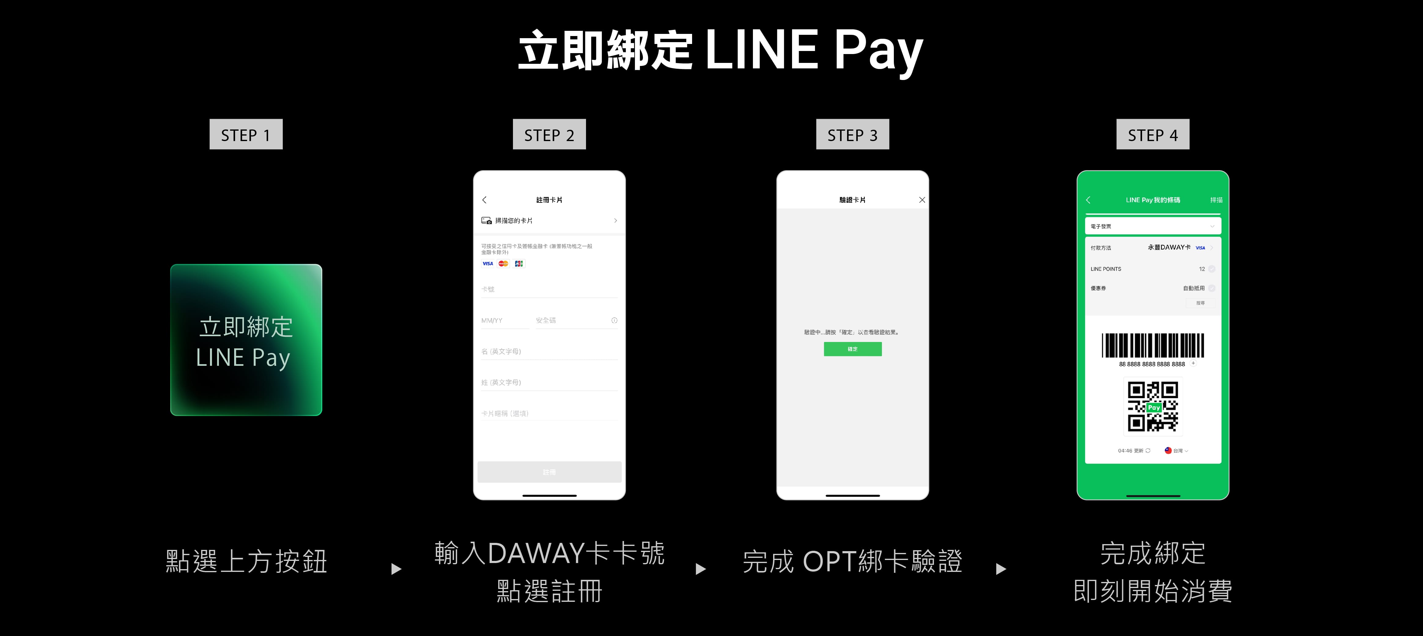 綁定 LINE Pay 是使用 DAWAY 卡獲得 LINE Pay 回饋的必要條件。