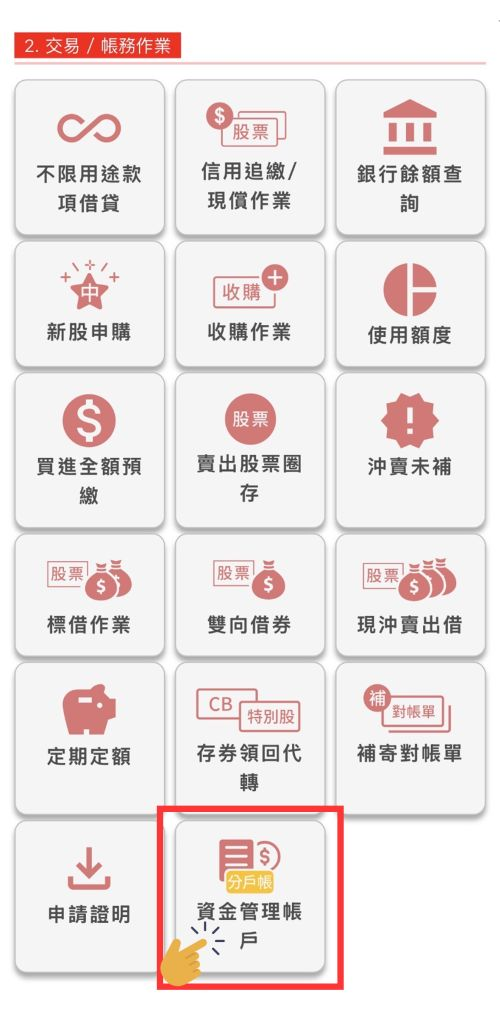 如果你是早期開戶的人,那資金管理帳戶就是新功能,需要再申請開戶才能使用。