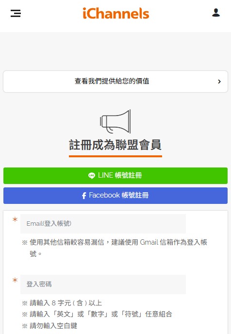 在通路王 iChannels 推廣需要先註冊會員,在通路王官網,免費註冊帳號即可。