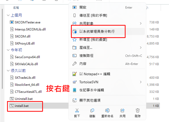 將「install.bat」按右鍵「以系統管理員身分執行」。