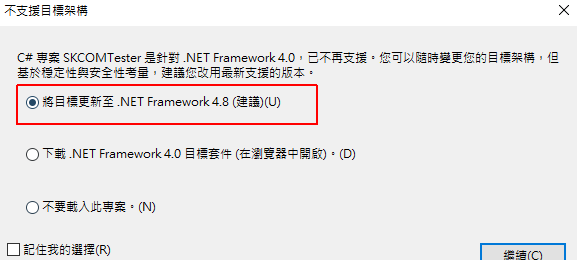 如果遇到 .NET Framework 版本太舊無法載入問題,可以直接升級使用最新版本開啟。