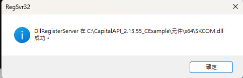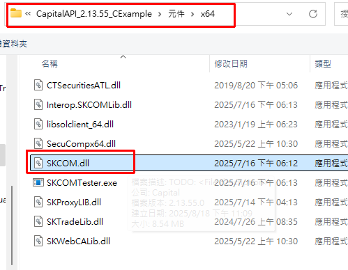 在安裝元件之前,建議先將下載的目錄移動至 C:\ 底下,例如 C:\CapitalAPI_2.13.55_CExample\