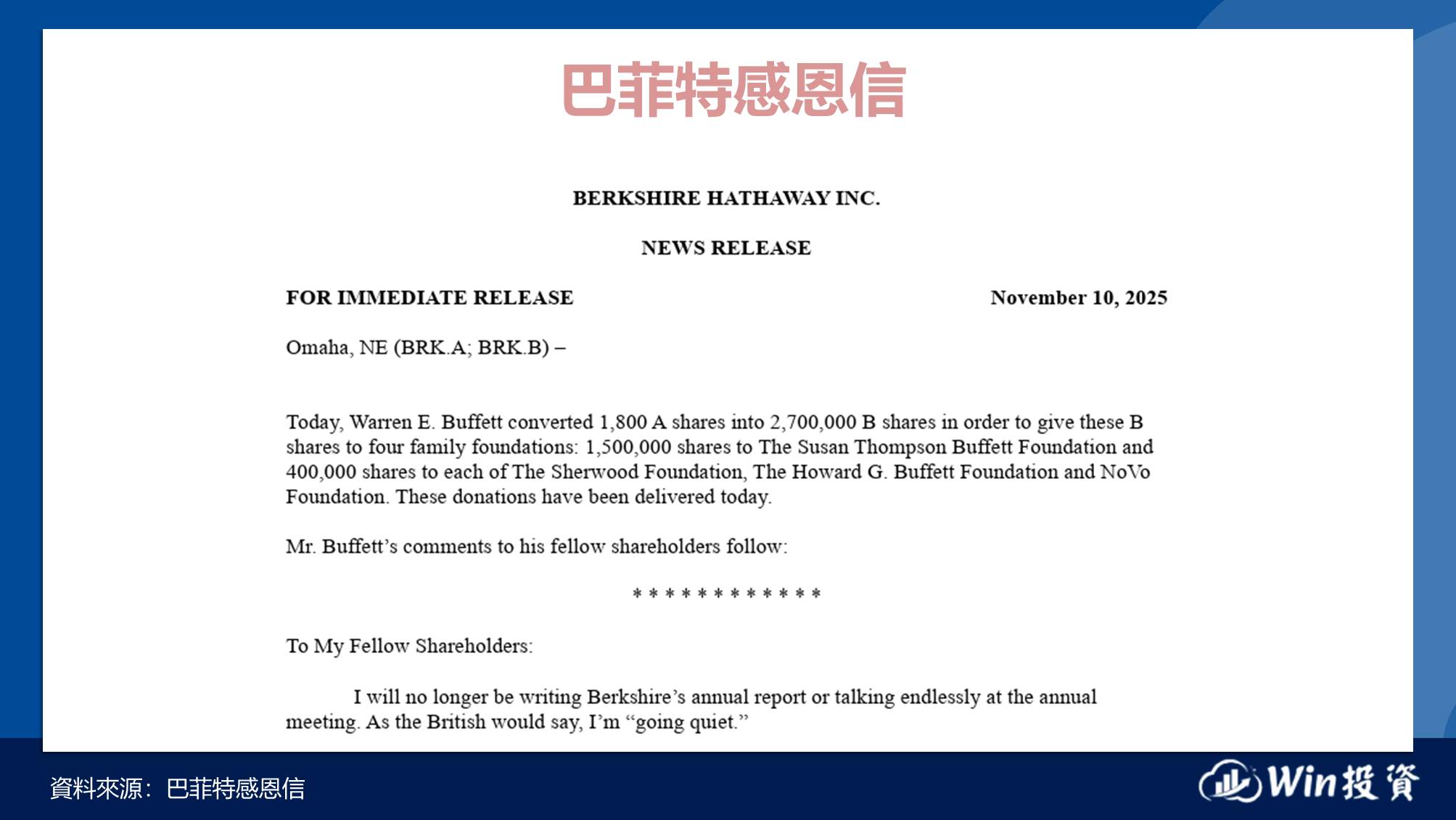 2025 年感恩節前夕,波克夏(Berkshire Hathaway Inc.) 傳奇投資人 華倫・巴菲特(Warren E. Buffett)