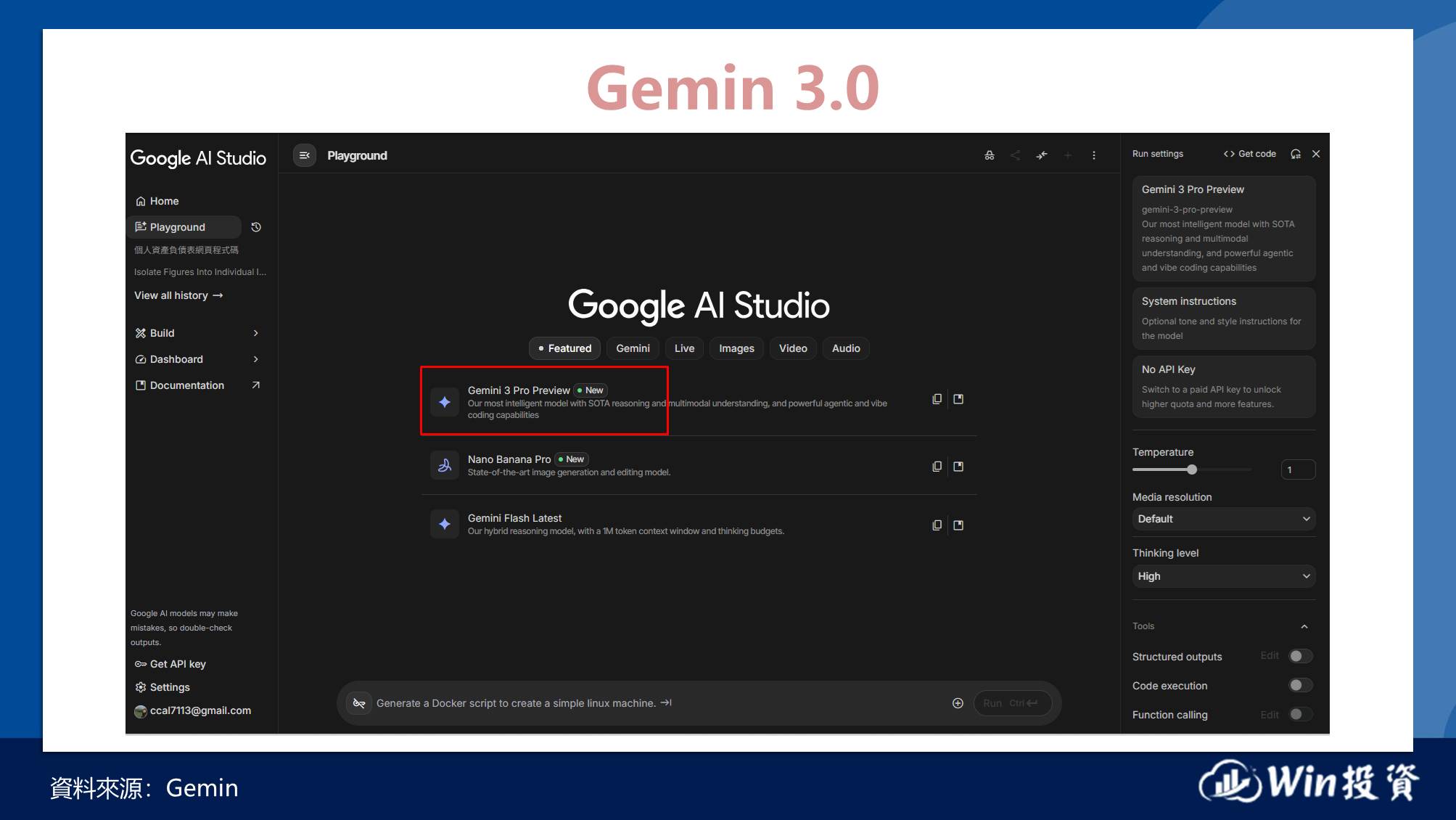 Gemini 3 Pro 在 Google AI Studio(目前免費試用)