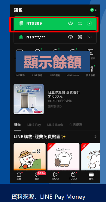你的 LINE 錢包介面會出現一個錢包標誌,