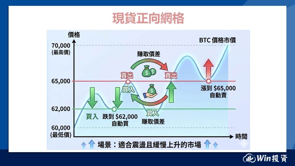 如果你只是想賺取生活費補貼,『現貨正向網格』直接賺回 USDT 則是最直覺的選擇