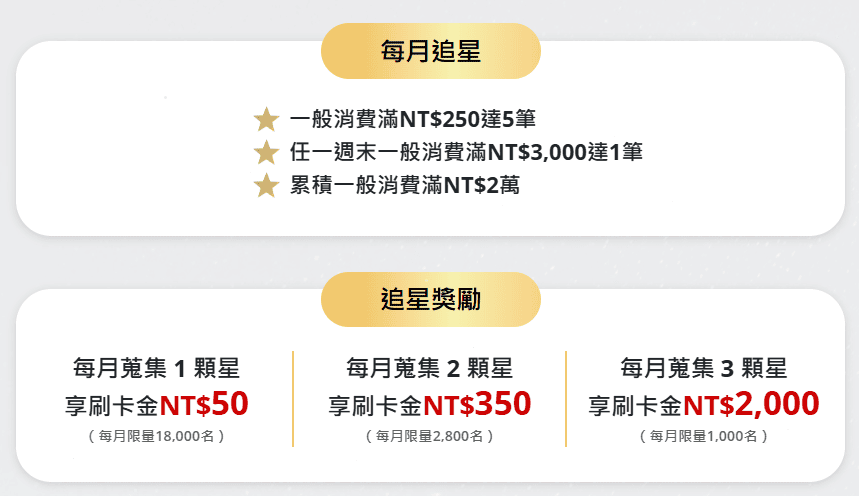 任務加碼的 2.5% 回饋,每月新增一般消費合計回饋上限為 NT$300 元刷卡金。