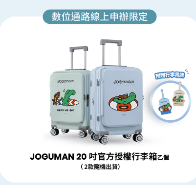 線上申辦送 JOGUMAN 20吋官方授權行李箱乙個 (2款隨機出貨)