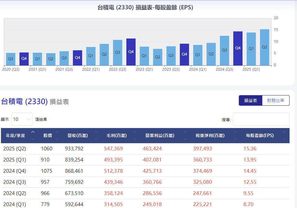 EPS 越高,代表公司每股賺的錢越多,盈利能力越強。
