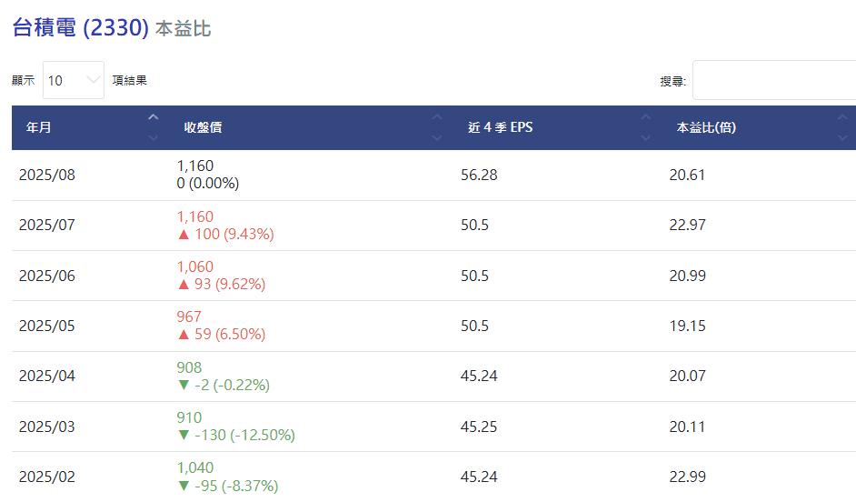| 本益比 (P/E Ratio) | 股票的市場價格與每股盈餘的比率 | 反映投資者願意為每元盈餘支付的價格,本益比越高代表市場對公司未來發展抱持較高的期待 |