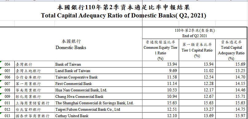 普通股、第一類資本、及資本適足率得最終各達到 11%、12.5% 及 14.5% 的標準,