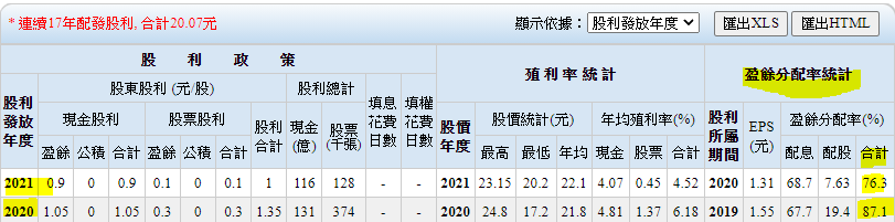 2021 年配息率 76%,而2020 年有 87%